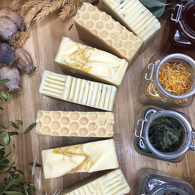 Au choix parmi notre gamme : Savon au Miel, au Calendula ou à l'Ortie.